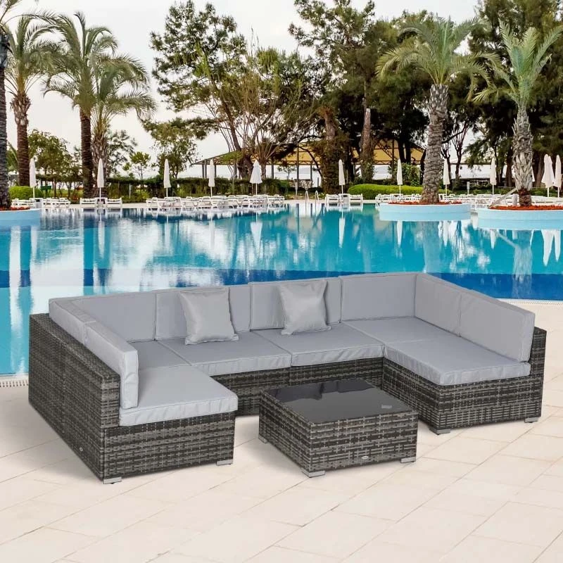 Outsunny 6-Seater Rattan Garden Furniture Set – Grey/Beige – 860-027GY
