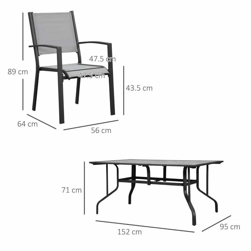 Outsunny 7 Piece Garden Dining Armchairs and Table Patio Furniture Set – Black & Grey – 84B-839