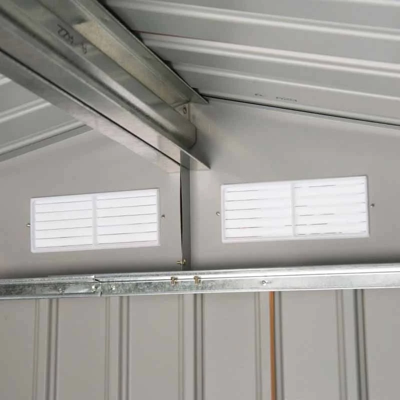 - Sloped roof allows water to roll off, preventing build-up and rust formation