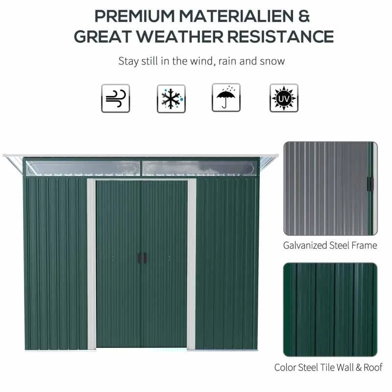 Outsunny 8.5 x 4ft Tilted Roofed Metal Storage Garden Shed with Lightsky Panels – Green – 845-173V01GN
