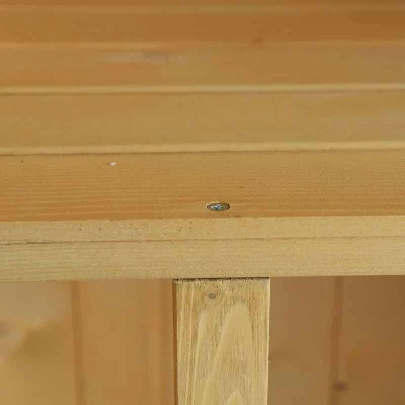 - Tilted roof with asphalt layer prevents water from entering the shed