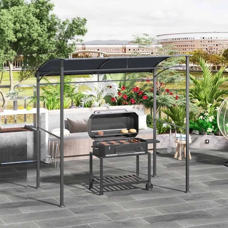 - Unique curved canopy design adds visual appeal to your outdoor cooking space