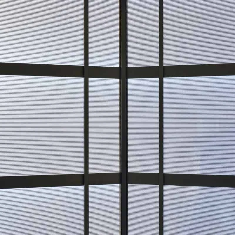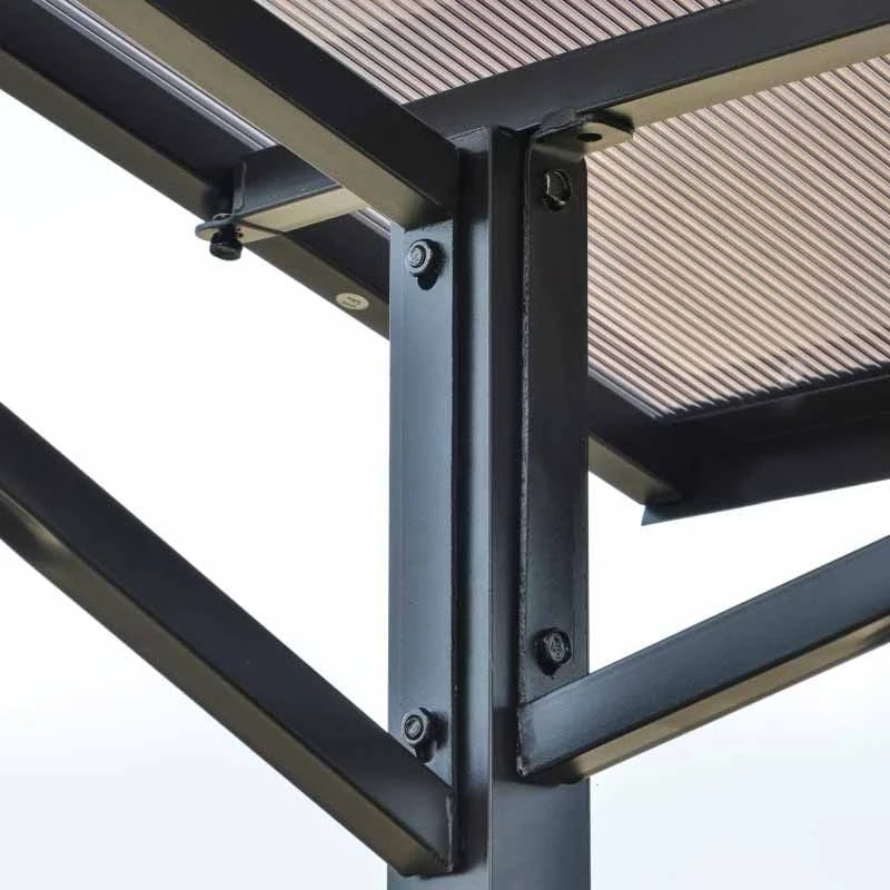 - Polycarbonate roof to protect underneath, sloped for water to roll down to the ground