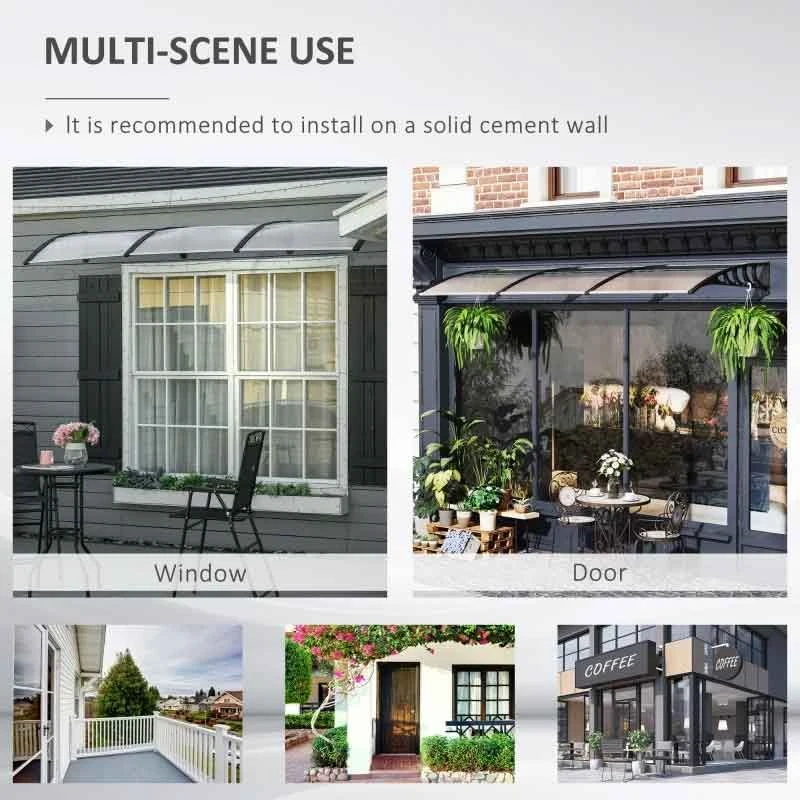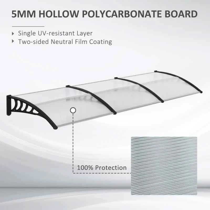 The Outsunny Canopy Outdoor Awning features three polycarbonate panels which with their long design covers a large area for plenty of protection. Suitable for placing above doors and windows to keep you sheltered and dry. The UV coating on the panels help to protect you from the sun’s harmful rays. The aluminium frames are strong in structure, supporting the weight of the panels and holds itself steadily on the wall.