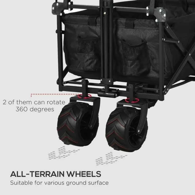 Outsunny Folding Garden Trolley With Canopy – Black – 845-327V02BK