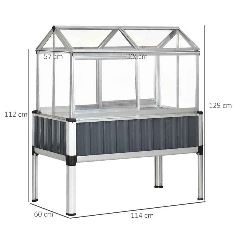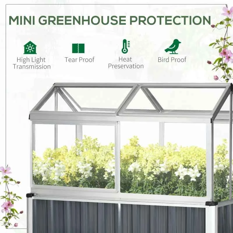 Outsunny Galvanised Steel Raised Garden Planter with Greenhouse – Grey/Silver – 845-771V00CG