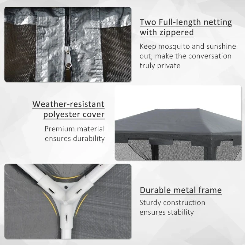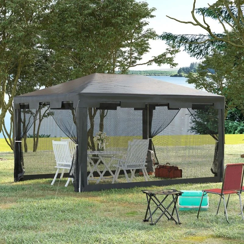 Outsunny Garden Gazebo Marquee with Mesh Curtains 4000x3000mm – Dark Grey – 84C-022GY – Details