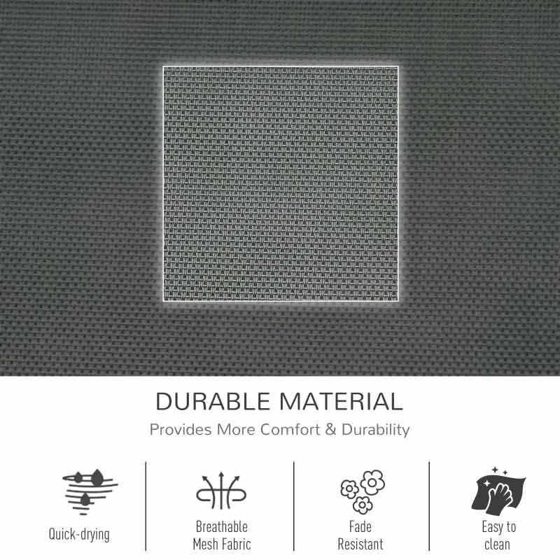 If you are looking for a modern piece of furniture to finish off your outdoor living space, this Outsunny reclining rocker garden chair is the one for you. The added head rest pillow and wave seat design perfectly contours your body keeping you supported and comfortable all day long. Constructed from strong powder coated steel frame, this garden chair is durable, protected from the elements and will last for years to come. Completely covered in a texeline sling fabric it drains water and is easily cleaned with a damp cloth. The bonus added side pocket is handy for keeping your sunglasses, phone or book safe and accessible.