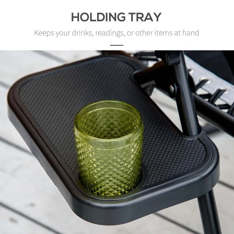 Check out this stunning Outsunny garden sun lounger that we can be sure will compliment your outdoor living space perfectly. Constructed from a powder coated metal frame and plastic armrests this lounger is strong, durable and will last for years to come. Covered in a high-quality fabric that circulates air keeping you cool on warm summer days and can be easily cleaned with a damp cloth. The added head pillow will support you whilst sunbathing in the comfort of your own garden and complete with a shade to protect your eyes from the sun for hours on end. Sit back whilst reading or use the reclining back and footrest function to lay flat. The handy side tray with cup holder is ideal for keeping your phone, book, and drinks secure and accessible. This sun lounger is lightweight so can be easily manoeuvred to your preferred position of your garden and can be compactly stored away when not in use. If you are looking for a simple but stylish sun lounger, look no further this is the one for you.