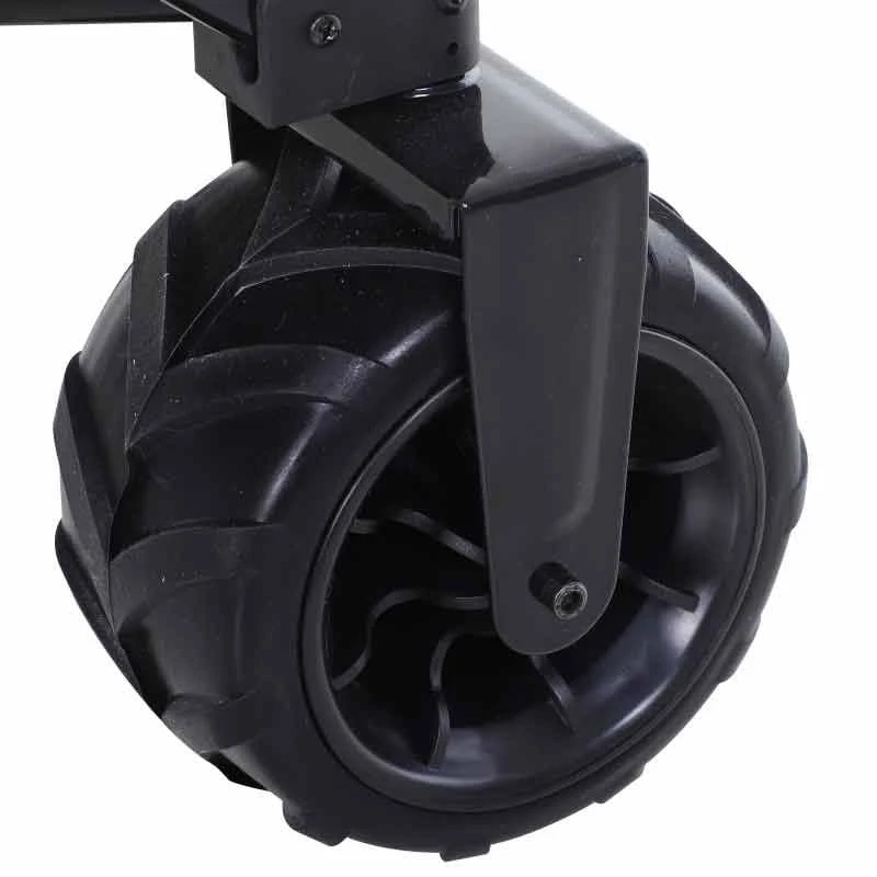 - Four wheels, two of which rotate around fully, to move the cart around on sand and solid ground