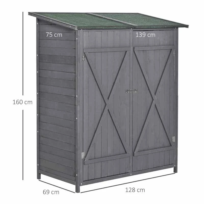 Outsunny Garden Wooden Storage Shed with Storage Table – Grey – 845-353