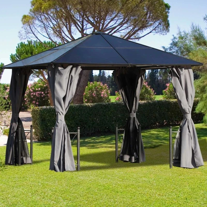 Outsunny Hardtop Garden Gazebo with Curtains and Nets 3000x3000mm – Black – 84C-171 – Details