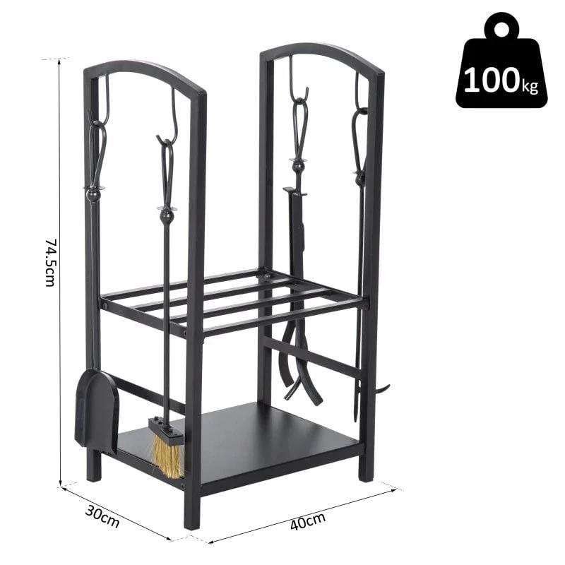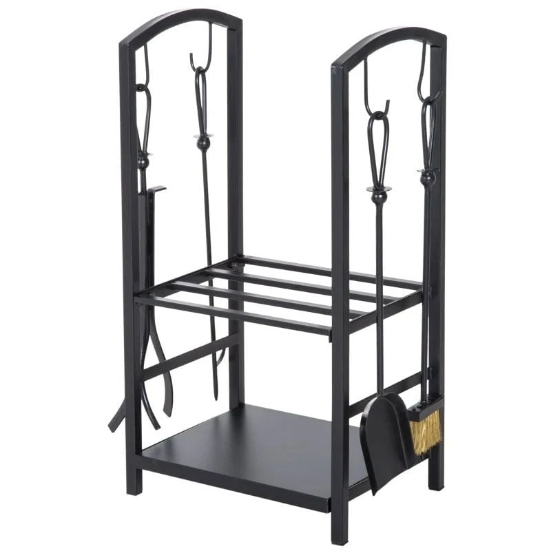 The Outsunny HOMCOM steel firewood rack and accessories will improve your firewood storage. This long-lasting rack is built of sturdy steel and has a sleek black finish. Its two-tier design provides plenty of space for managing your firewood. Because of the elevated construction, your wood will stay dry and easy to burn. The kit contains important equipment such as tongs, a poker, a shovel, and a broom, which are simply stored on integrated hooks. It’s lightweight and portable, so you can quickly transport it from your living room fireplace to outside storage. This rack is ideal for both indoor and outdoor use. Assembly is simple and quick.