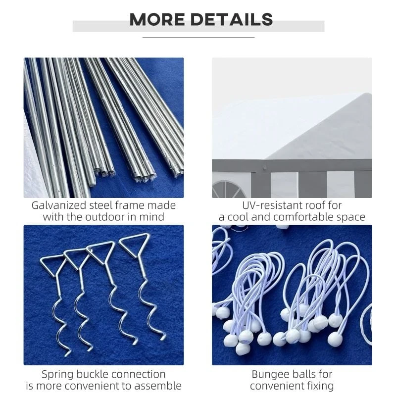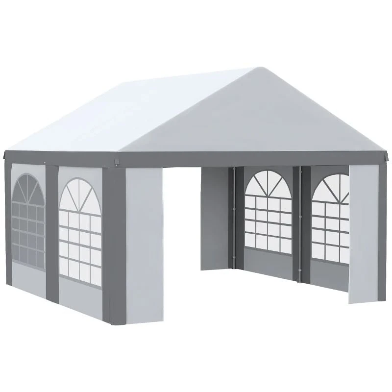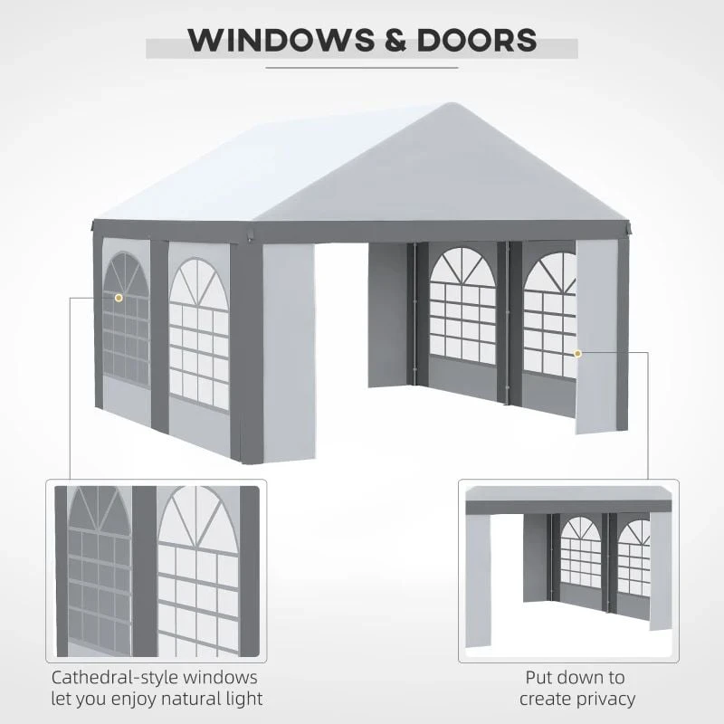 Outsunny Marquee with 4x Windows & 2 Doors 4000x4000mm – White & Grey – 84C-375V01GY – Details
