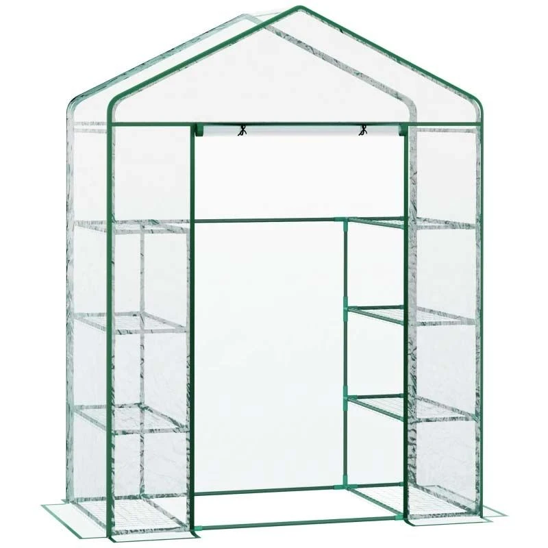 Outsunny Metal Frame Walk-in Greenhouse with Shelves 143L x 73W x 195Hcm – Transparent & Green – 01-0482