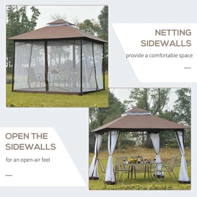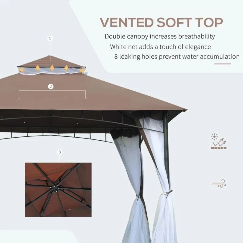 Outsunny Metal Garden Gazebo with Mesh Curtains 3000x3000mm – Brown – 84C-010CF – Details