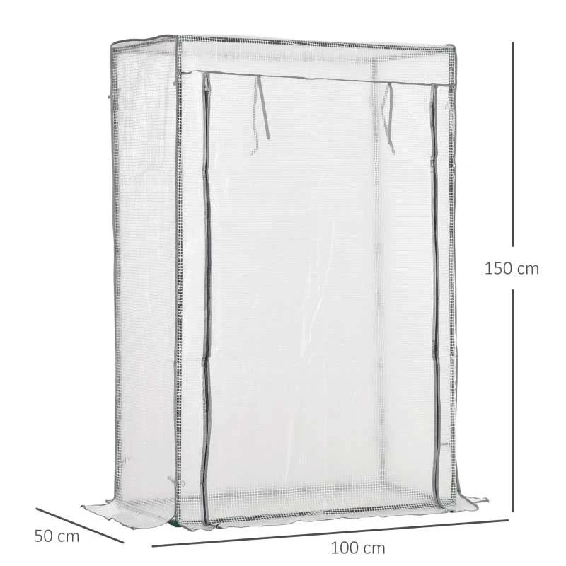 Outsunny Mini Greenhouse with Roll-up Door 100L x 50W x 150Hcm – White – 845-386V01