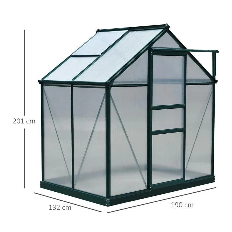 Outsunny Mini Walk-in Greenhouse with Sliding Door & Roof Vent 190L x 132W x 201Hcm – Green – 845-057