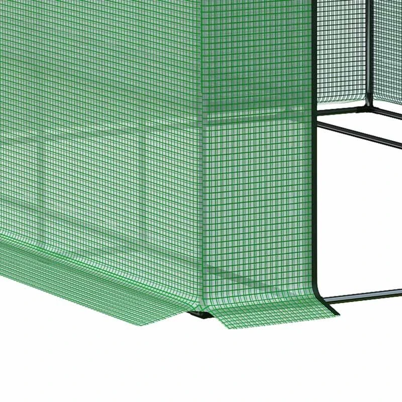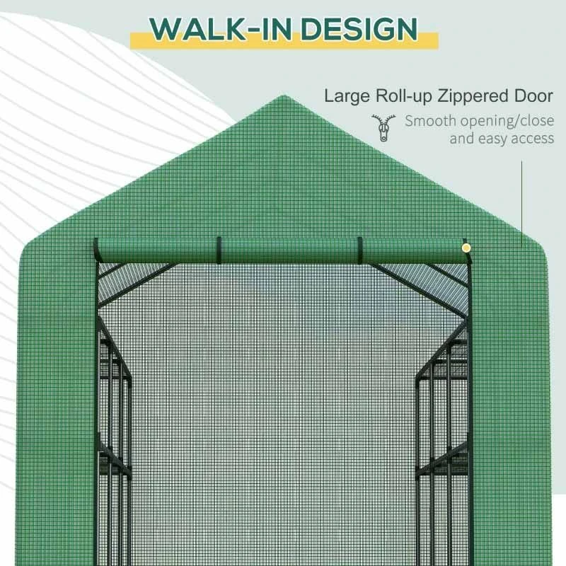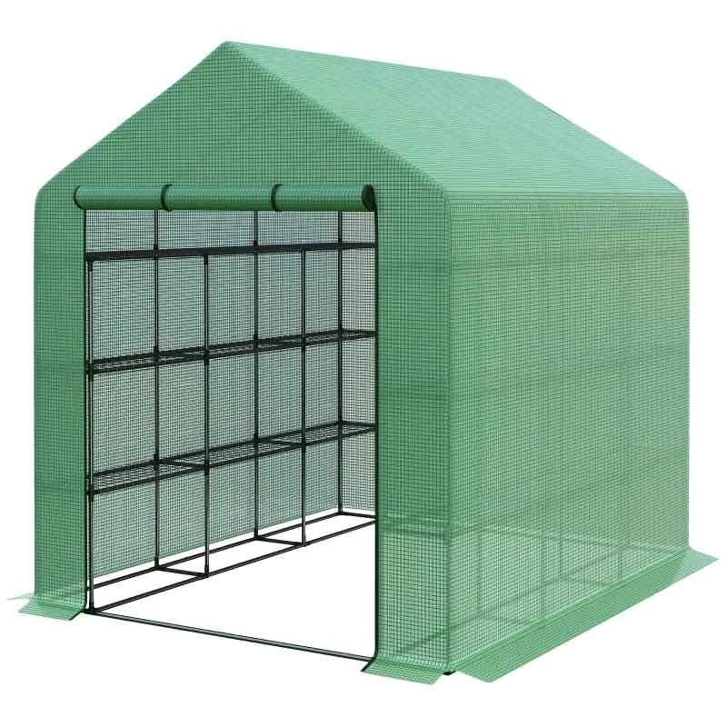 Outsunny Polytunnel Walk-In Greenhouse with Removable Cover & Shelves 244L x 180W x 210Hcm – Green – 845-696