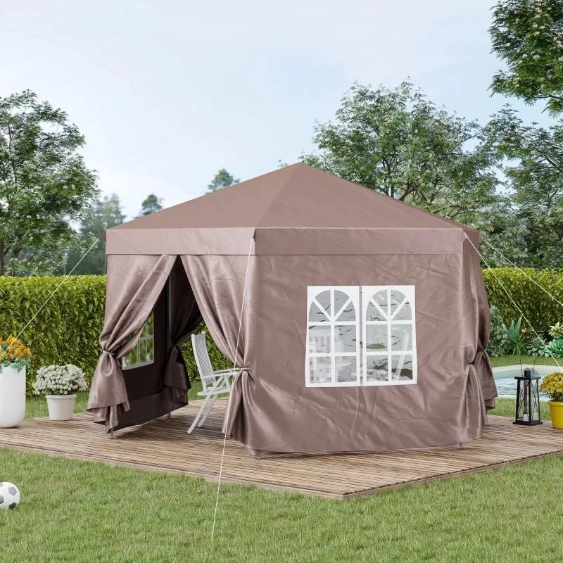 Outsunny Pop-up Garden Gazebo with Curtains & Windows 4000x4000mm – Brown – 84C-106 – Details