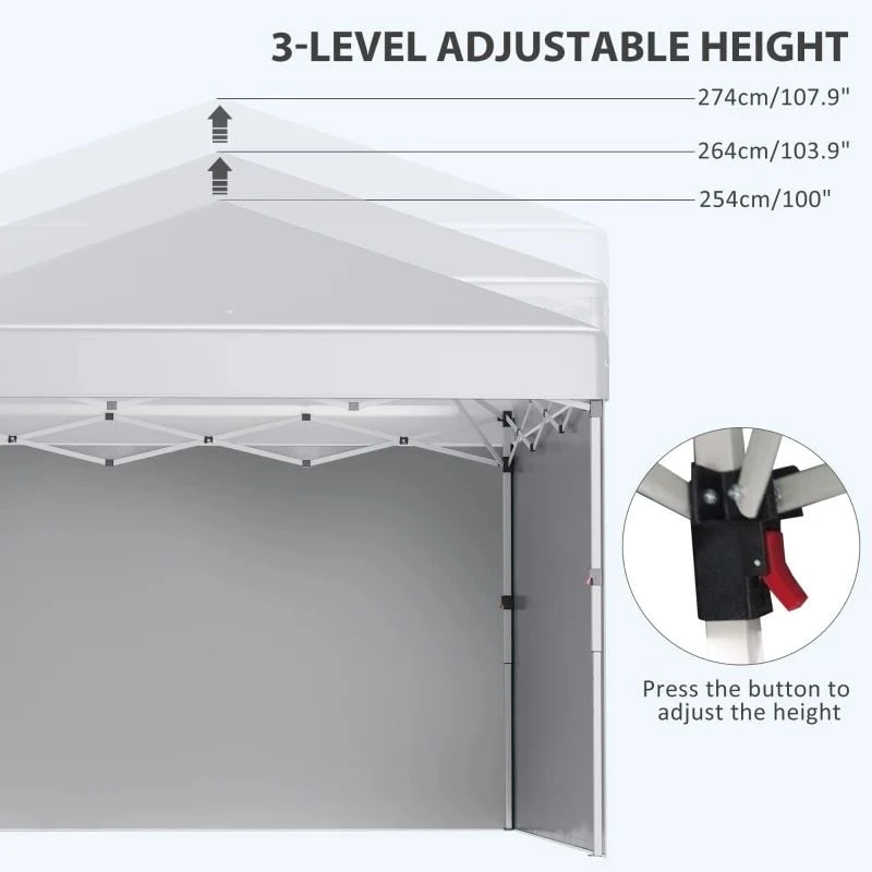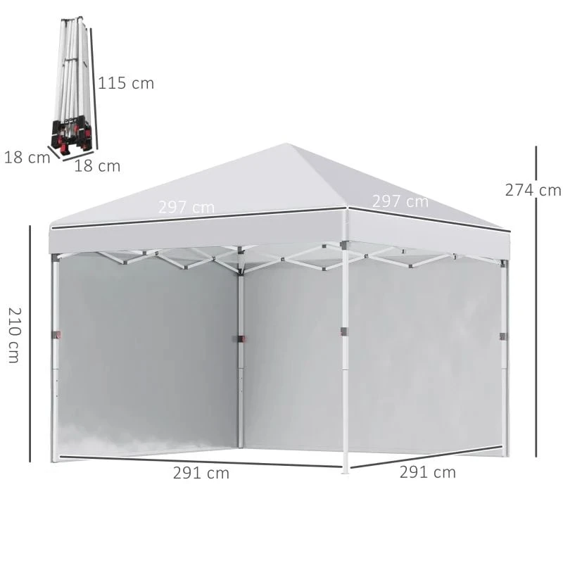 Outsunny Pop-Up Garden Gazebo with Leg Weight Bags and 2 Side Walls 3000x3000mm – White – 84C-403V00WT – Details