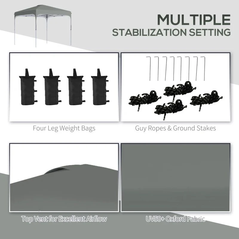 Outsunny Pop-Up Garden Gazebo with Wheeled Carry Bag 2500x2500mm – Grey – 84C-262V01 – Details