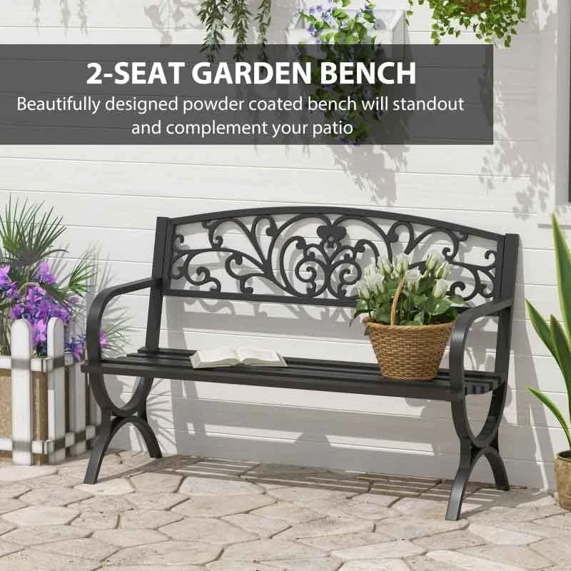 Outsunny Powder Coated Steel Garden Bench 127x60x85cm – Black – 84B-009