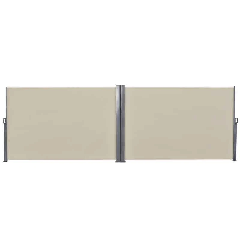 The Outsunny Pull-Out Patio Double Side Retractable Awning is double the length for extra protection against the sun and wind, with a thick and durable canopy with a PU coating for extra resilience. Both sides can be fixed arbitrarily to meet your different needs. With extra protection from ultraviolet rays, sun glare, light rain, and mild wind, this product can also be used as a privacy screen to create your own space, allowing you to enjoy the outdoor time more. With a smooth side pull-out design, with the canopy locking into place and retracting automatically, this product is easy for both adults and children to use. There is also a fitted spring to extend its lifespan. The steel frame has a protective coating for protection outdoors all-year round and is tough and durable. It is very easy to set up by simply fixing the steel frames to concrete or solid wood to keep fixed and in place.