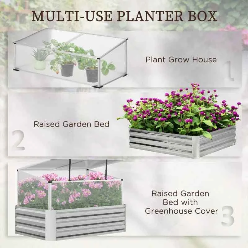 Outsunny Raised Bed with Mini Greenhouse and Cold Frame – Silver – 845-779V00SR
