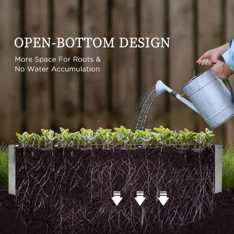 The Outsunny Raised Bed with Mini Greenhouse features a thick PC sunshine panel which gives plants a solid and stable home. It can protect your plants from too much heat or cold, shield plants from the gale, and help to keep out critters. The roof is sloped, so rain and wind slide right off. The top covers can be opened, providing fresh air, outside moisture and more sunshine. It can be your miniature nursery to keep saplings safe and stable. Its open-bottomed design lets you grow bigger plants with more extensive roots taking advantage of the tremendous increasing space for the outdoors and avoiding water accumulation and decay.