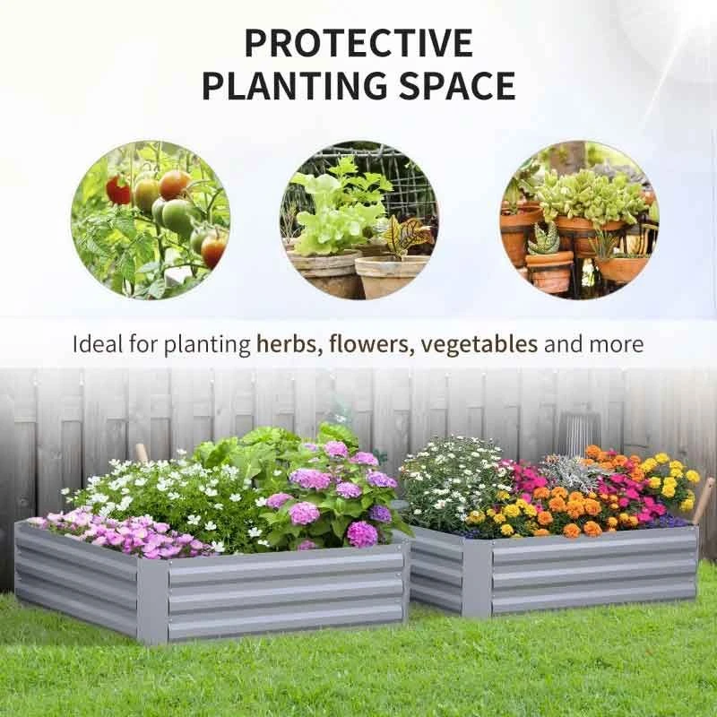 The Outsunny Raised Garden Bed Galvanized Steel Planter Boxes comes with two planters for outdoor plants so that you can keep your flowers and vegetables separate in raised beds for your garden. This garden planter has an open bottom so that water can drain quickly without build-up, and your plant’s roots aren’t restricted and have plenty of room to grow into the ground. The outdoor planter keeps weeds out of your soil and protects plants from being eaten or nibbled by small animals. Unlike wood, this garden bed’s thick colour steel material does not warp and will hold up to constantly being outside in the sun or the rain.