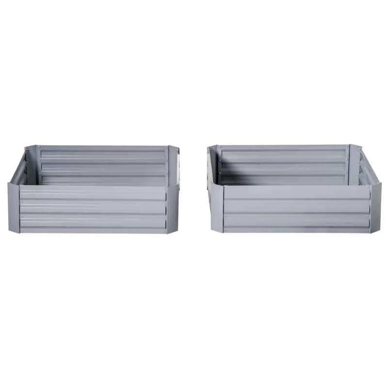 Outsunny Raised Garden Galvanized Steel Planter Boxes – Set of 2 – Grey – 845-517GY