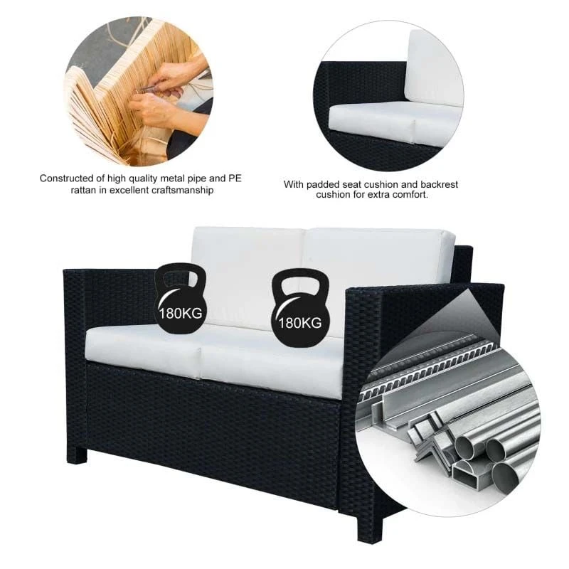 Outsunny Rattan 2 Seater Sofa – Black/Cream – 860-031BK