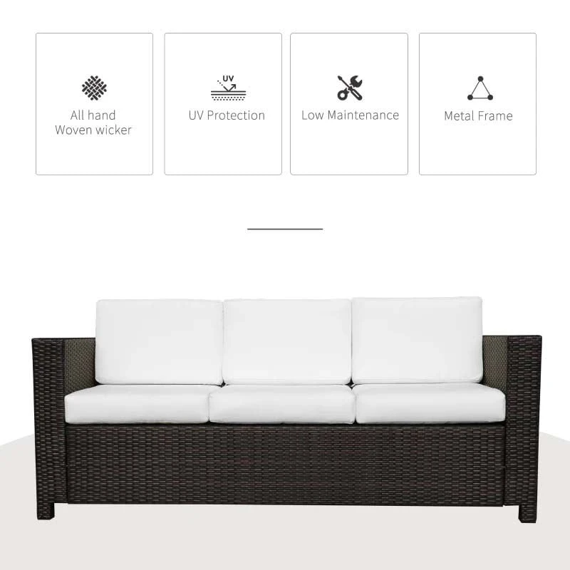Outsunny Rattan 3 Seater Sofa – Brown/Cream – 01-0719