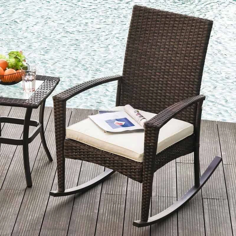 Outsunny Rattan Garden Rocking Chair W/Cushion-Brown/Beige-841-146BN