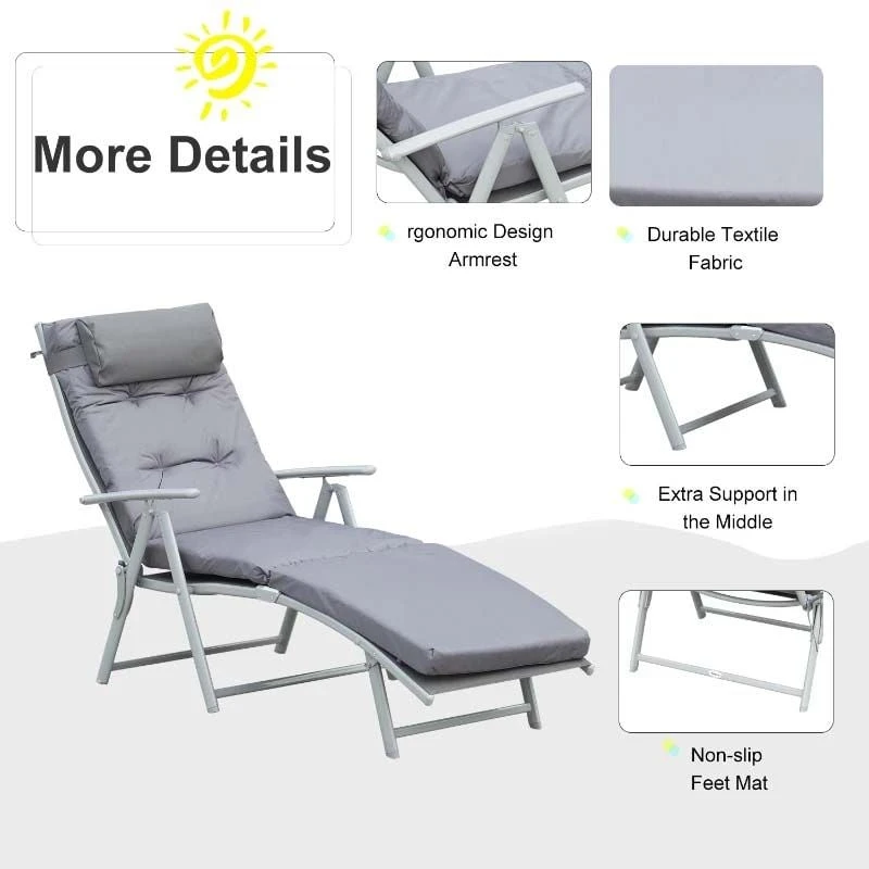 Outsunny Reclining Sun Lounger With Cushion – Grey – 84B-184V70GY