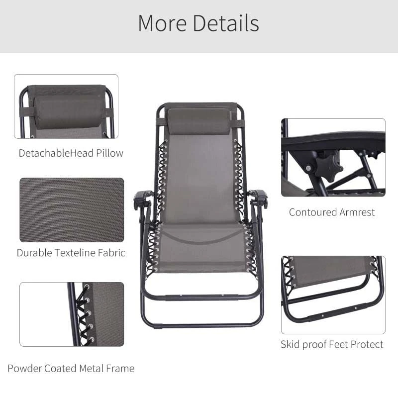 Outsunny Reclining Sun Lounger With Pillow – Grey – 84B-227GY