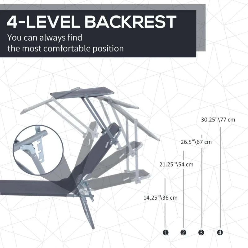 Outsunny Reclining Sun Lounger With Sun Shade – Grey – 84B-001GY