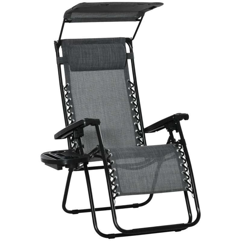 Outsunny Reclining Sun Lounger With Sun Shade – Grey – 84B-388V70LG