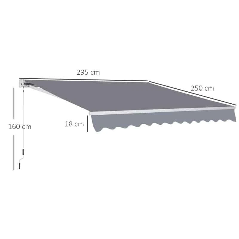 Outsunny Retractable Manual Awning 3 x 2.5m – Grey – 840-152