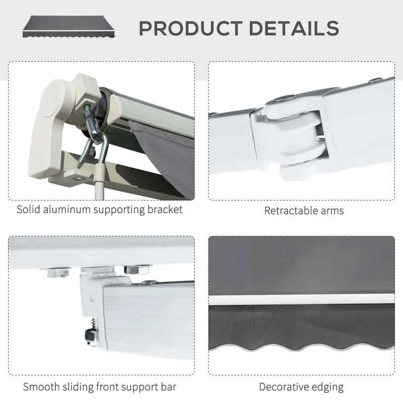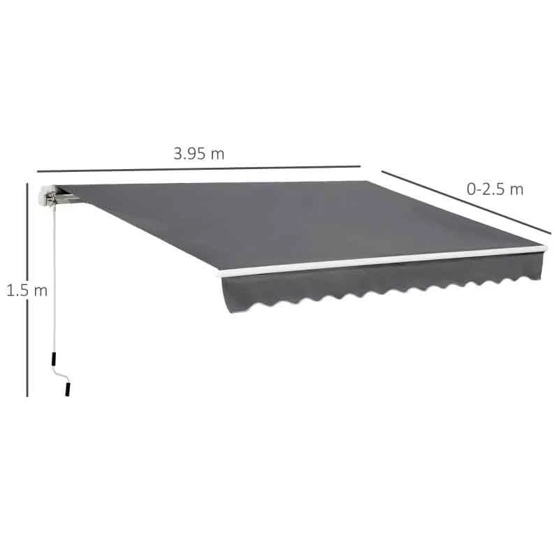 Outsunny Retractable Manual Awning 4 x 2.5m – Grey – 840-177V01CG