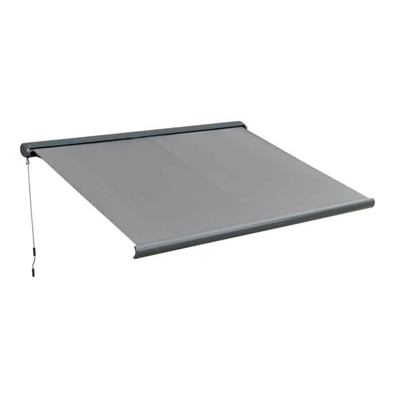 Outsunny Retractable Manual/Electric LED Strip Awning 3.5 x 3m – Grey – 840-222V01