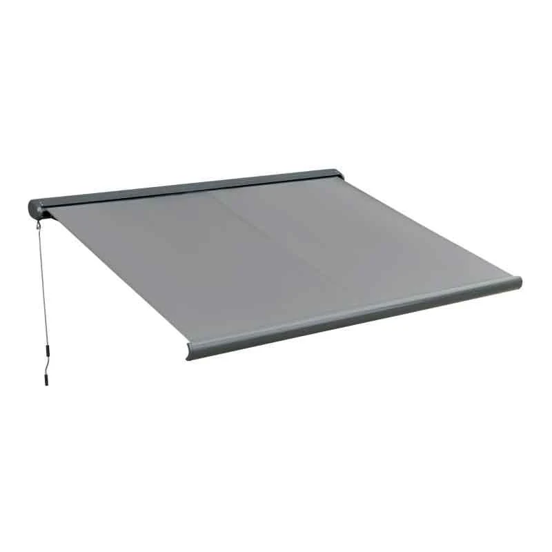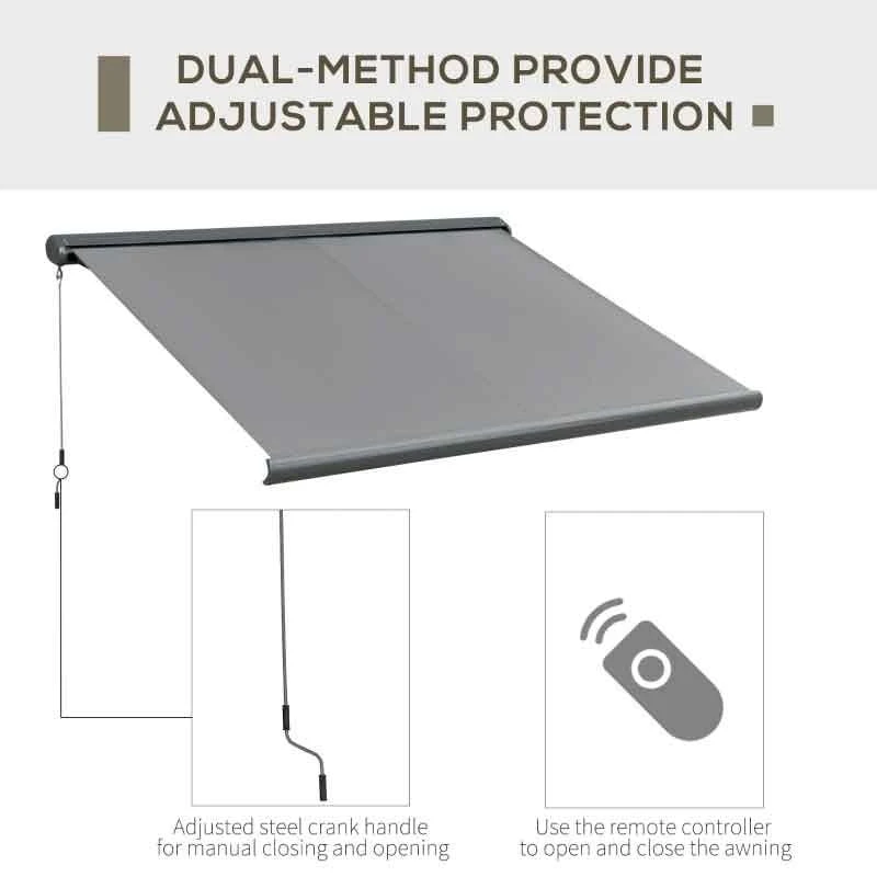 Outsunny Retractable Manual/Electric LED Strip Awning 3 x 2.5m – Grey – 840-222