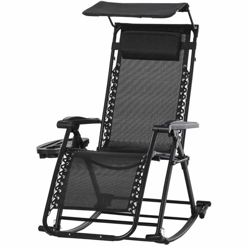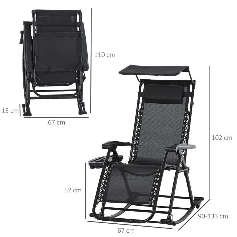 Outsunny Rocker Sun Lounger Chair – Black – 84A-080V01BK