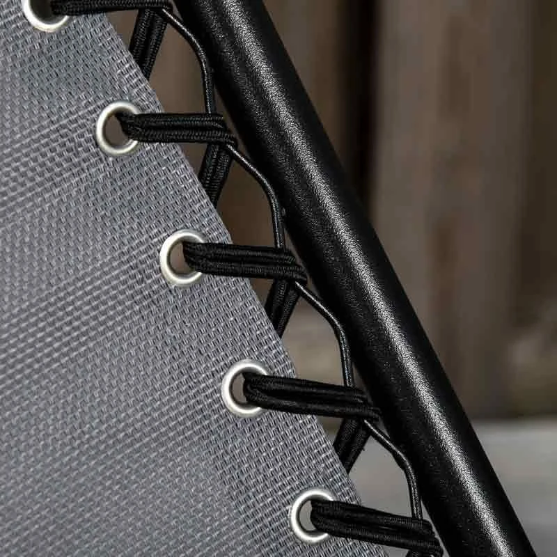 The Zero-Gravity Rocking Chair is great at comfort with its adjustable 10°-35° back angle allowing you to relax in your desired position. The chair is easy to be converted into a sooting rocker with just a flip of the bottom legs. The fabric seat with a removable padded headrest provides support for your neck and head. The canopy at the top offers shade from those UV rays on brighter days. The powder-coated steel frame makes it tough to withstand most weather conditions. A handy tray on the side holds your drinks, phone, or books and it is also removable in case you don’t need it. A double bungee support system with a safe load-bearing triangle provides stability. The chair’s compact design makes it easy to store or carry.