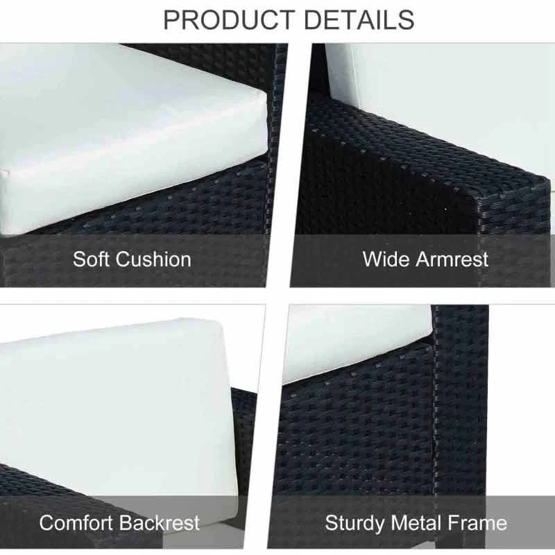 Elevate the beauty of your outdoor area with this Outsunny Rattan Sofa Armchair. The large plush seat and back cushions provide supreme comfort and relaxation. The cushions are also water-resistant and have machine-washable covers. The high backrest and armrest support and allow you to sit in it comfortably for hours. The galvanized steel frame wrapped in elegant PE rattan work prevents rust and damage outdoors.