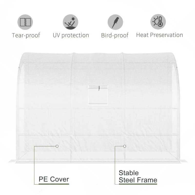 Outsunny Walk-In Greenhouse with 3-Tier Shelves & Zippered Doors – White – 845-302V01