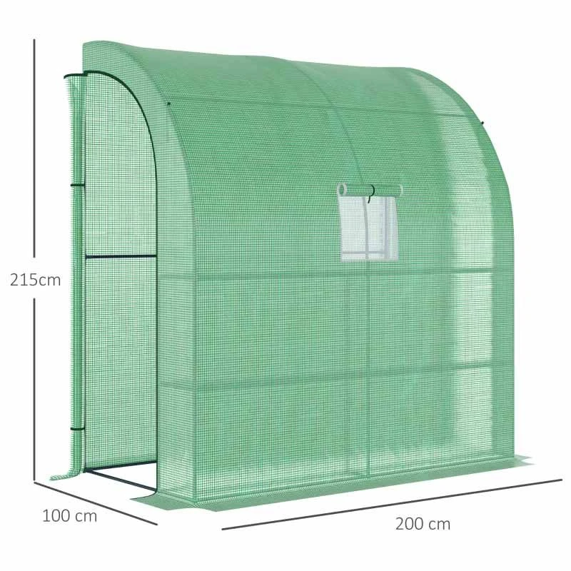 Outsunny Walk-In Lean to Greenhouse with Window & Shelf 200L x 100W x 215Hcm – Green – 845-304V04GN