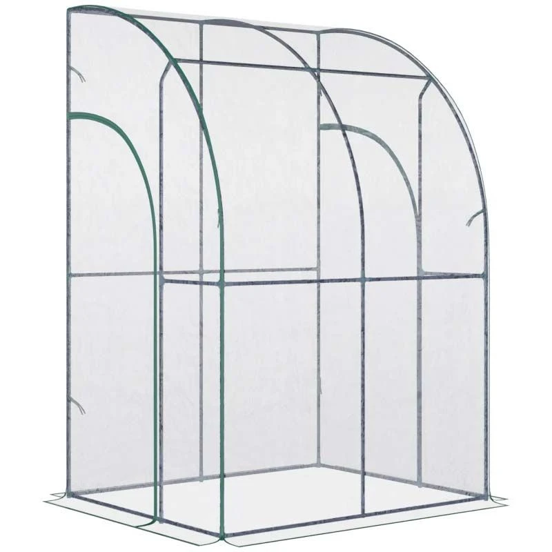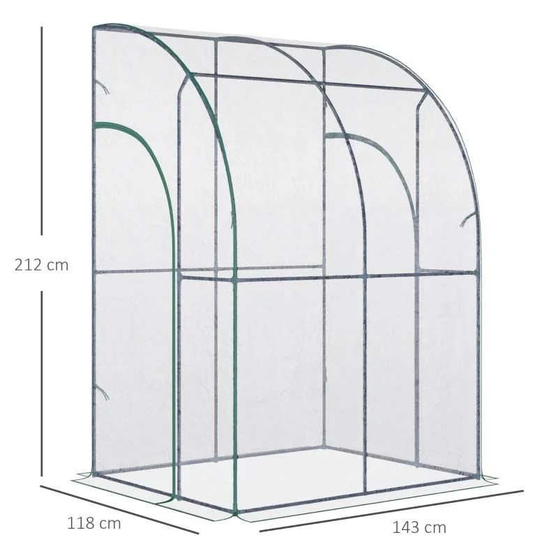 Outsunny Walk-In Lean to Tunnel Greenhouse with Zip Up Door 143cm x 118cm x 212cm – Clear & Green – 845-592