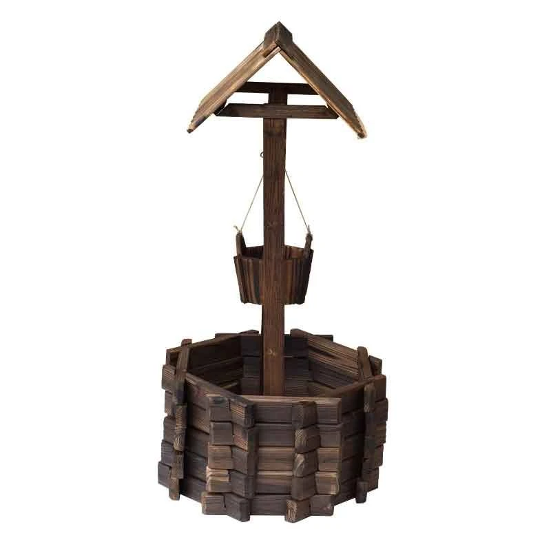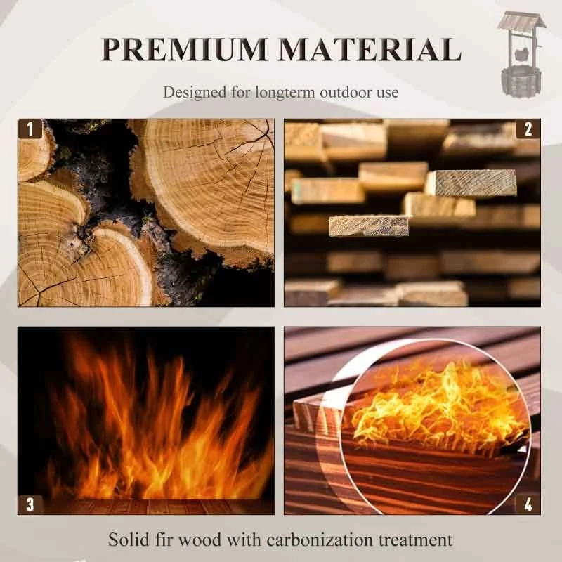 The Outsunny Wishing Well Planter Bucket features a burnt-like wood finish providing your garden with a rustic and stylish appearance. The Solid fir wood keeps this planter durable and long-lasting. The large well and small bucket are designed to hold multiple plants at once. This product also includes a string rope to hang the bucket low or high as per your preference. This product also comes with a 6 month manufacturers gaurantee for your peace of mind.